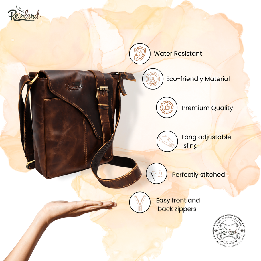 Reinland Genuine Leather Classic Vintage Brown Leather Sling Bag.